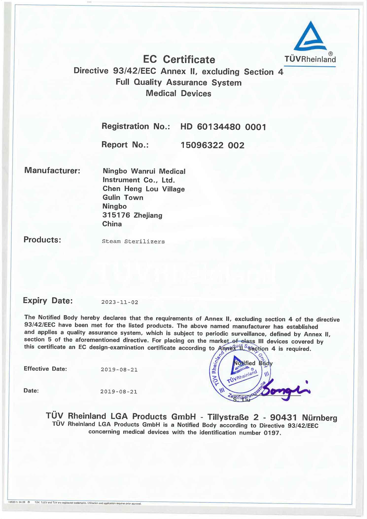 Ang Ningbo Wanrui Medical Instrument Co, Ltd ay isang propesyonal